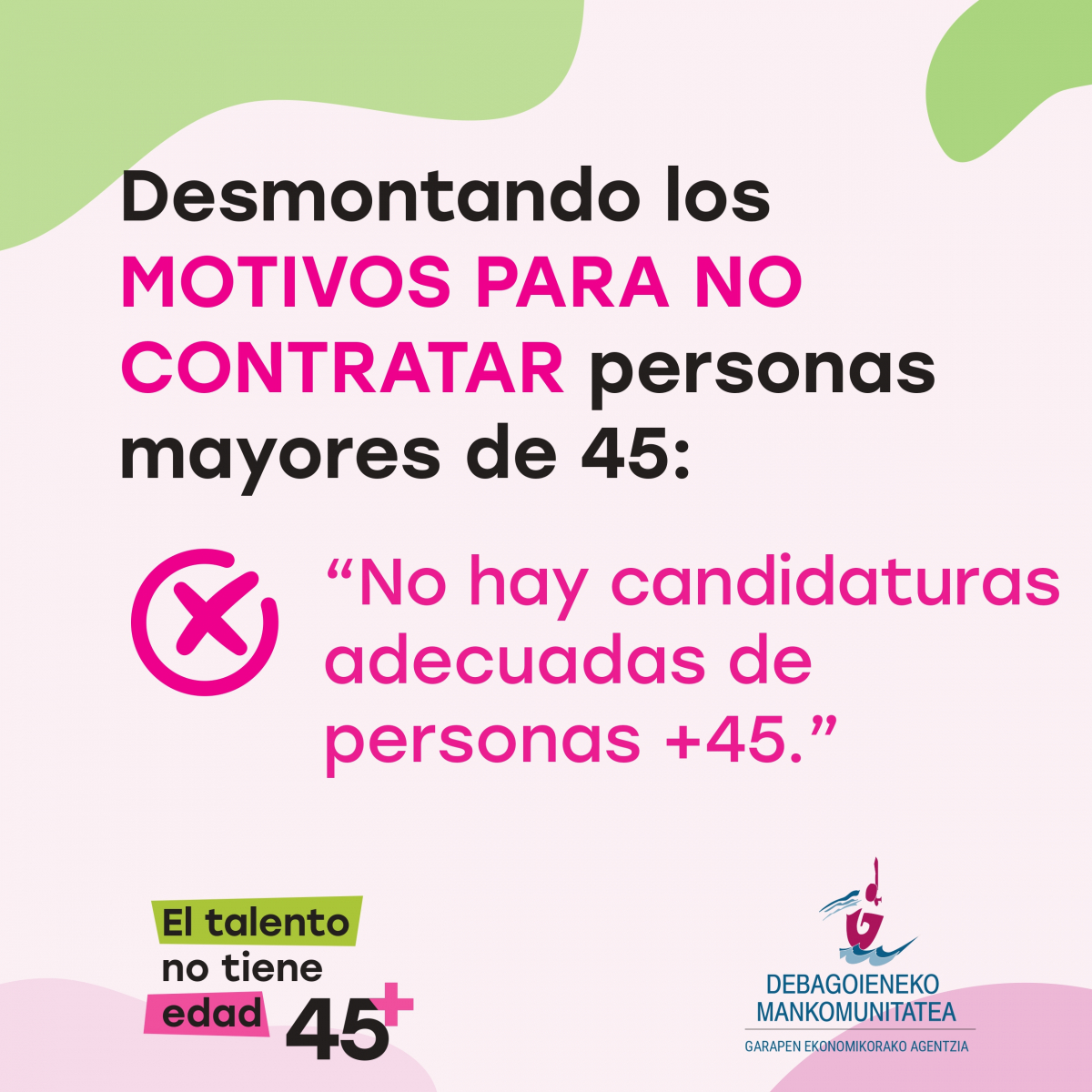 Desde la Agencia de Desarrollo de Debagoieneko Mankomunitatea hemos iniciado una campaña titulada “Talentuak ez dauka adinik / El talentono tiene edad”. Es una iniciativa para fomentar la contratación de personas mayores de 45 años en Debagoiena.